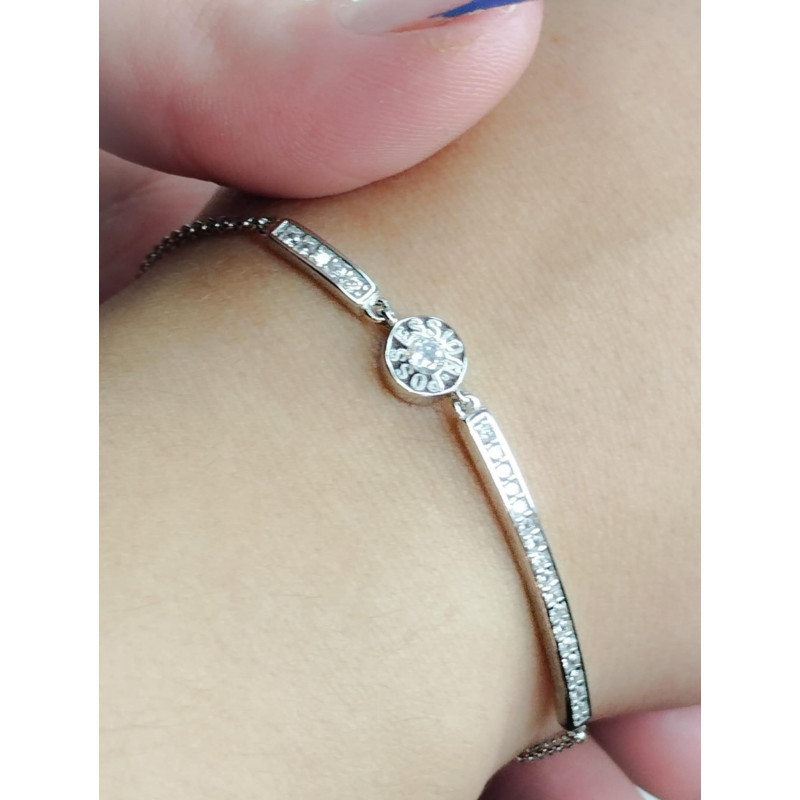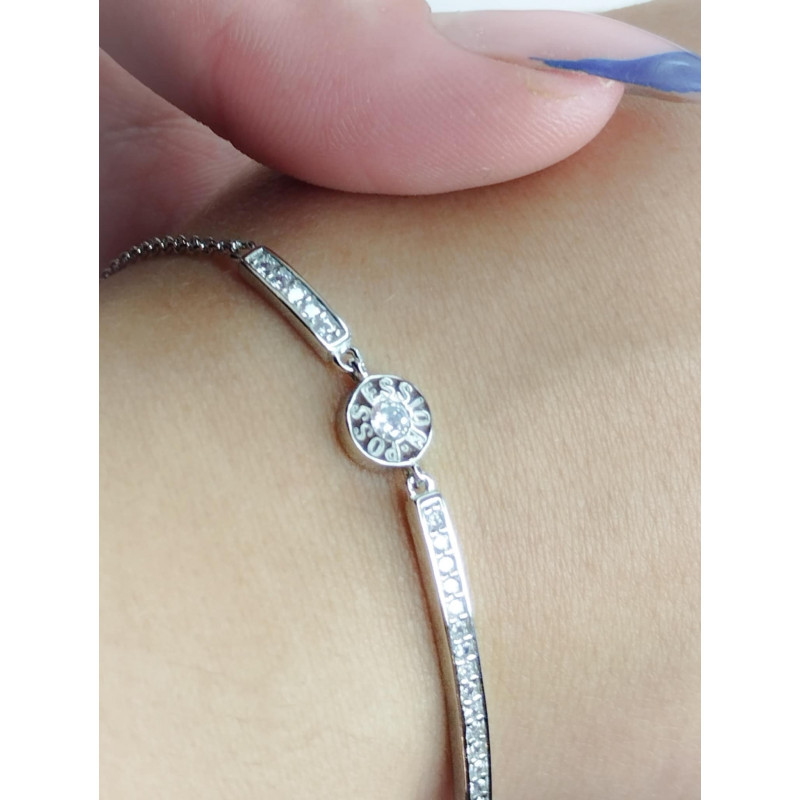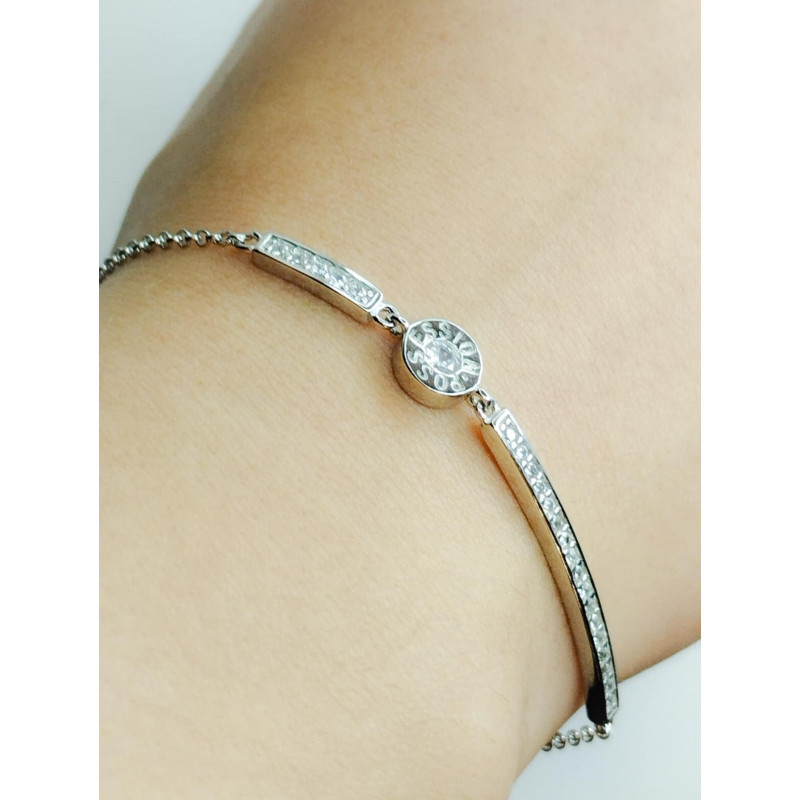 Υπέροχο κομψό βραχιόλι σχέδιο μπάρες με λευκά ζιργκόν εξαιρετικής ποιότητας από επιπλαρινωμένο ασήμι με ρυθμιζόμενο μέγεθος