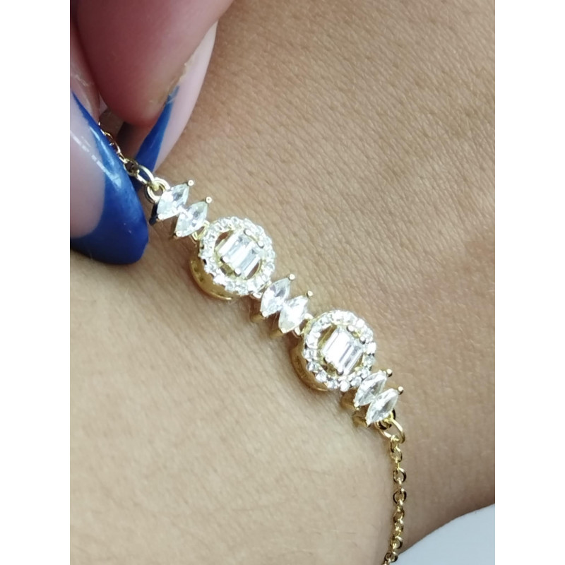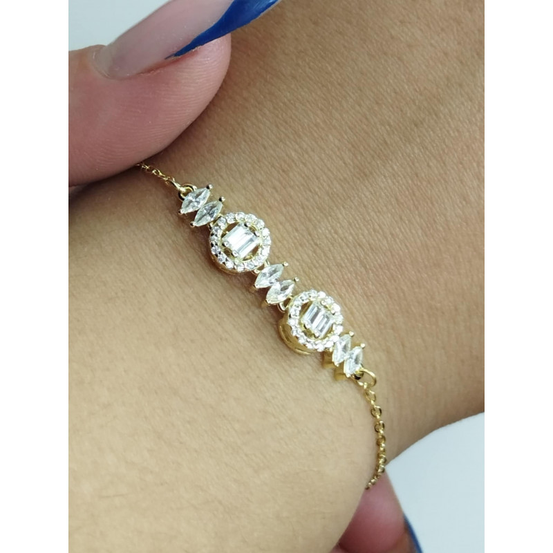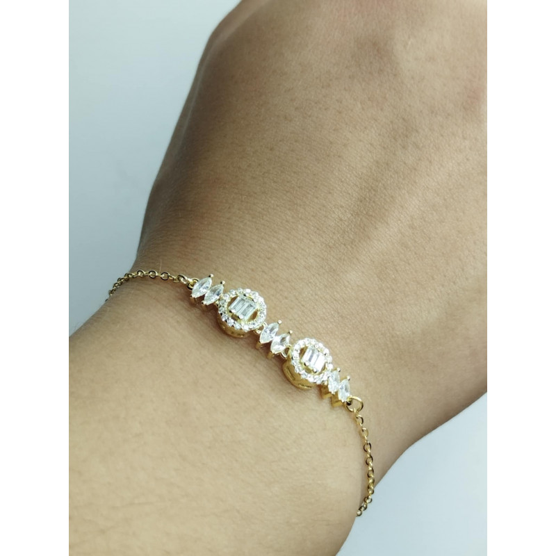 Λαμπερό κομψό βραχιόλι με λευκά ζιργκόν μπαγιέτες, εξαιρετικής ποιότητας από επιχρυσωμένο ασήμι 925 με ρυθμιζόμενο μέγεθος