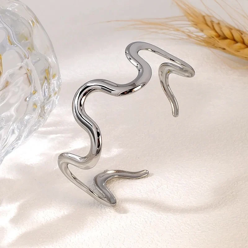 Υπέροχο μοδάτο βραχιόλι με πρωτότυπο σιγμοειδές σχέδιο, από επιπλατινωμένο ατσάλι εξαιρετικής ποιότητας που δεν μαυρίζει