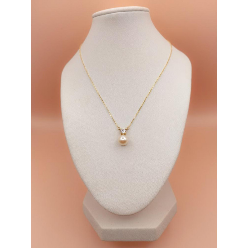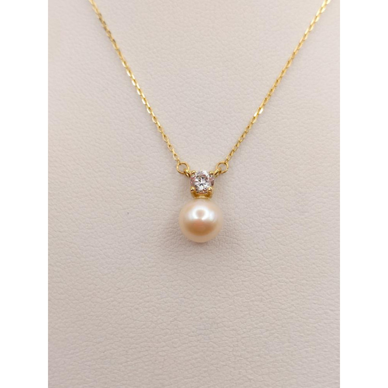 Πανέμορφο κολιέ με φυσικό μαργαριτάρι εξαιρετικής ποιότητας μπίλια 6 χιλιοστών σε σύνθεση με πέτρα λευκό ζιργκόν, από χρυσό 14 καρατών με ρυθμιζόμενο μήκος αλυσίδας στα 40 και 42 εκατοστά