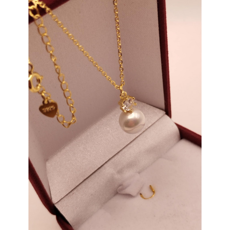Υπέροχο κομψό με μοτίφ από φυσικό μαργαριτάρι συδιασμένο με λευκό ζιργκόν, από επιχρυσωμένο ασήμι 925, με ρυθμιζόμενο μέγεθος αλυσίδας