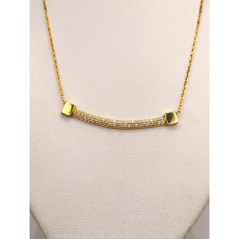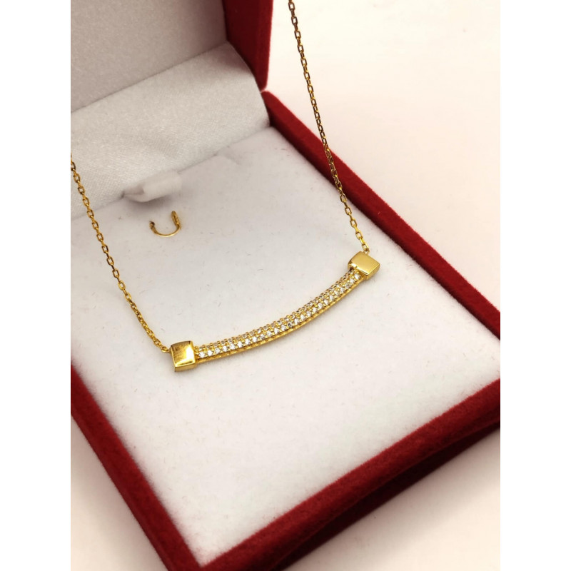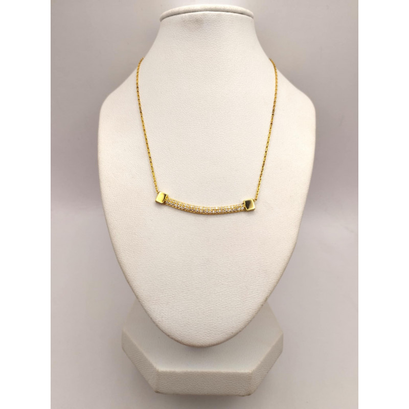 Πανέμορφο μοδάτο κολιέ με μπάρα γεμάτη μικρά λευκά ζιργκόν από επιχρυσωμένο ασήμι 925 με ρυθμιζόμενο μέγεθος αλυσίδας
