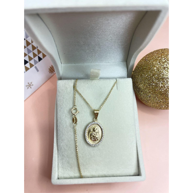 Πανέμορφο κολιέ παναγίτσα σε σχήμα οβάλ με λευκά ζιργκόν, και πλεκτή αλυσίδα 45 εκατοστών, από χρυσό 9 καρατίων