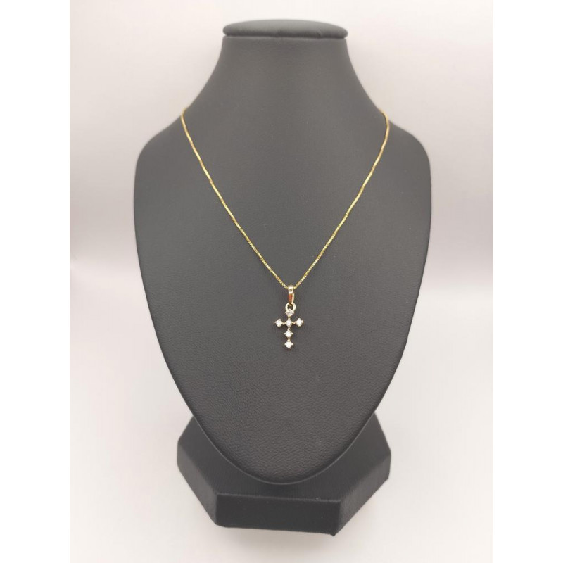 Πανέμορφο σταυρουδάκι με λευκά ζιργκόν,σε κολιέ απο χρυσό 14 καρατιών με αλυσίδα μήκους 45 εκατοστών