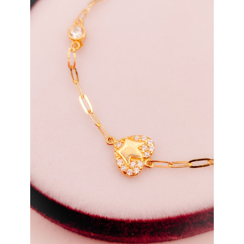 Πανέμορφο βραχιόλι με καρδιά με λευκά ζιργκόν και σχέδιο κορώνα από χρυσό 9 καρατιών και αλυσίδα με ρυθμιζόμενο μήκος