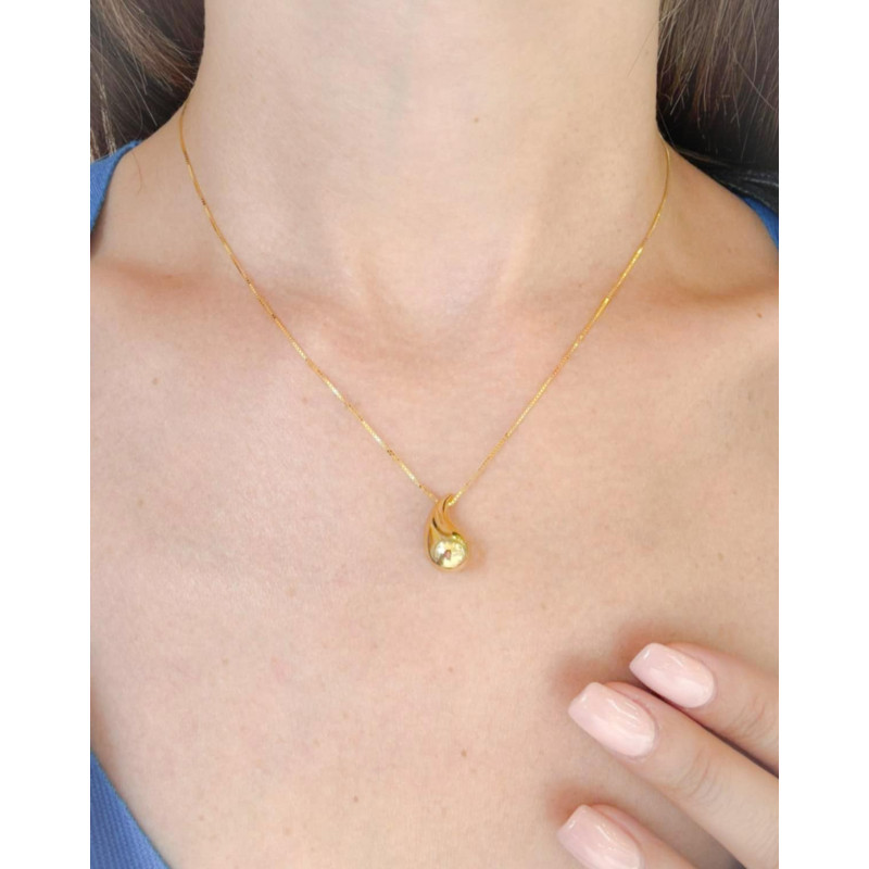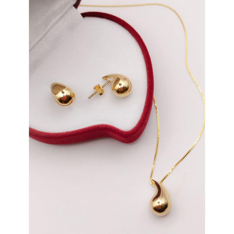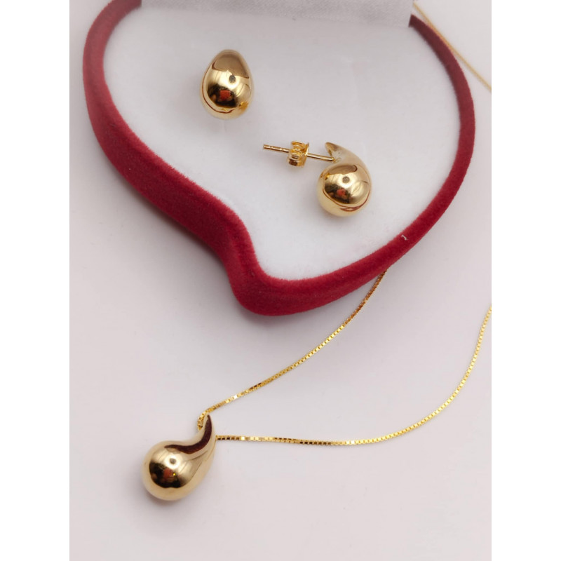 Μοναδικό κομψό και μοδάτο σετ με σχέδιο σταγόνα που αποτελείται από κολιέ και καρφωτά σκουλαρίκια με λουστρέ φινίρισμα, από χρυσό 14 καρατίων