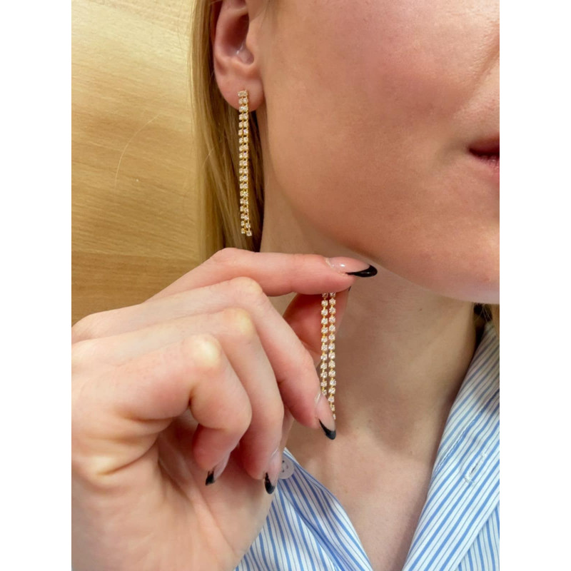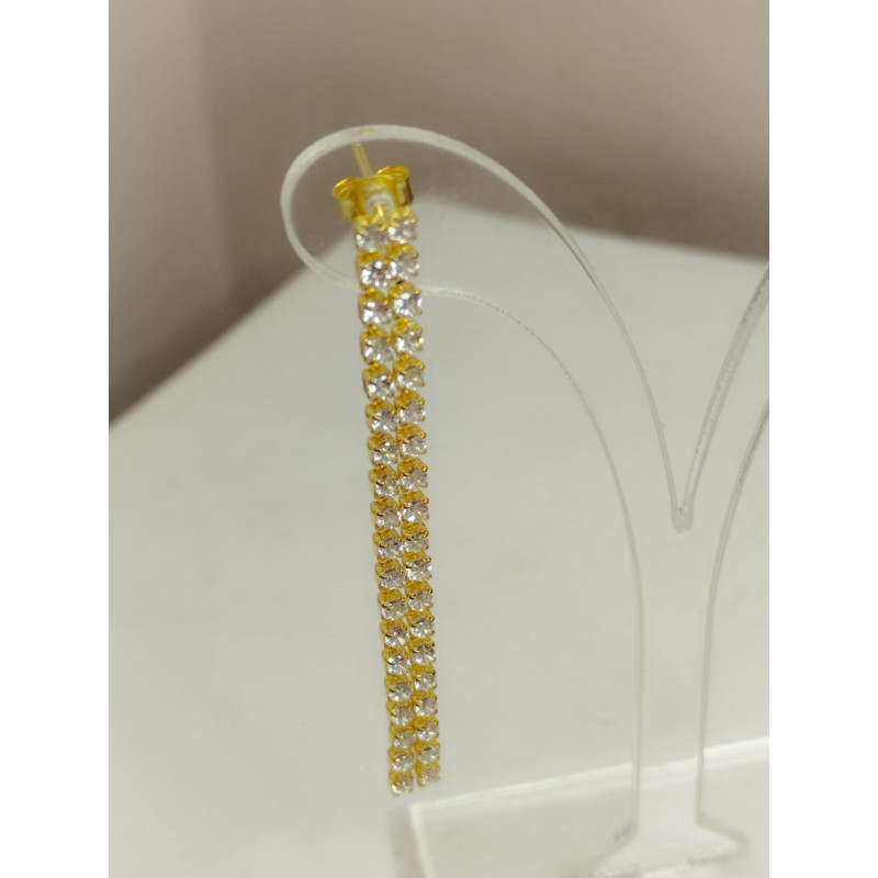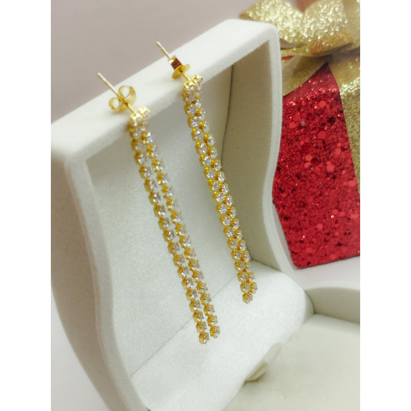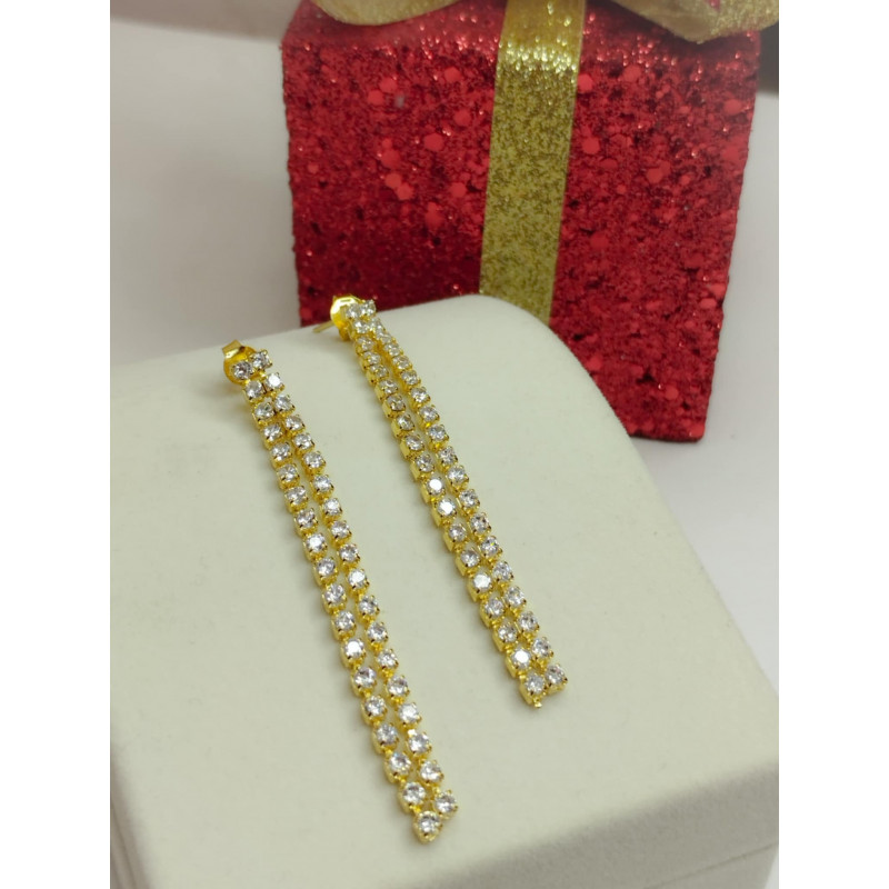 Μοναδικά κομψά κρεμαστά σκουλαρίκια ριβιέρες λαμπερά για κάθε γιορτινή εμφάνιση με δύο σειρές λευκά ζιργκον από επιχρυσωμένο ασήμι 925 εξαιρετικής ποιότητας