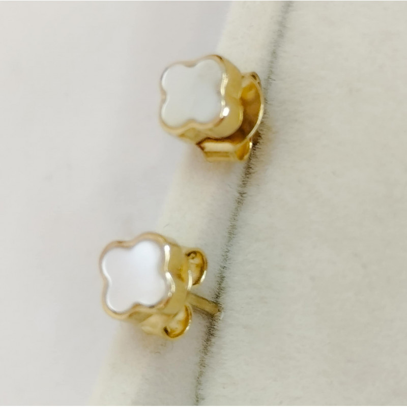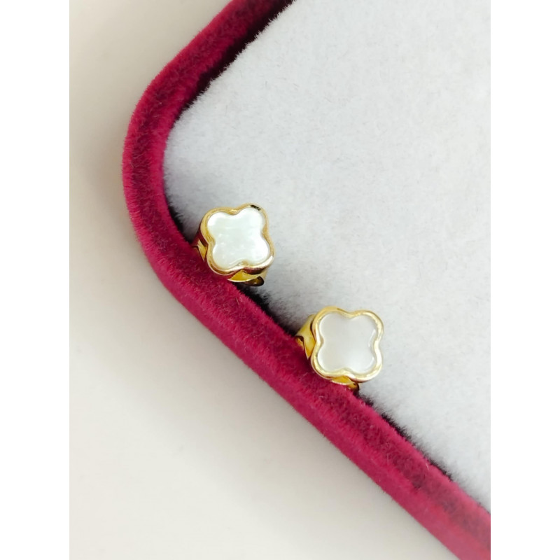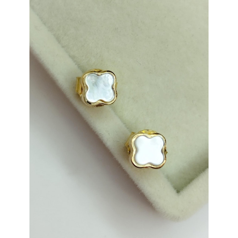 Πανέμορφα κομψά καρφωτά σκουλαρίκια με σχέδιο van cleef με λευκό οπάλιο, από χρυσό 9 καρατίων