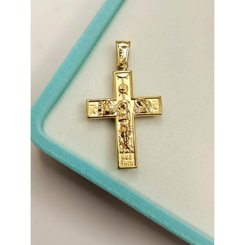 Πανέμορφος βαφτιστικός σταυρός unisex διπλής όψεως, με την βάφτιση του Ιησού από την μια πλευρά και σχέδιο με χρυσό και λευκόχρυσο 14 καρατίων από την άλλη