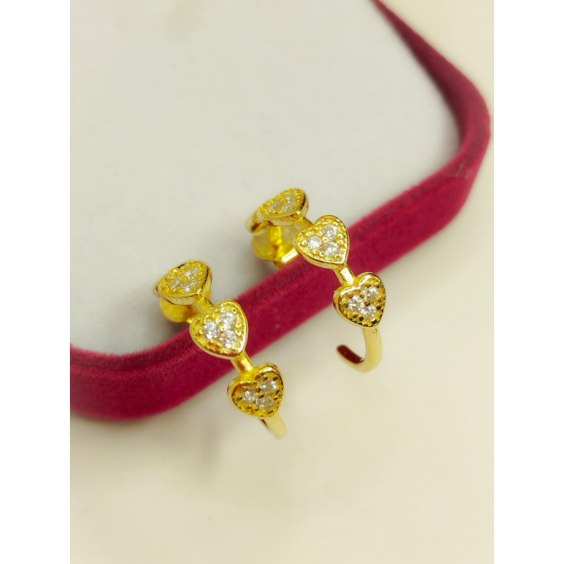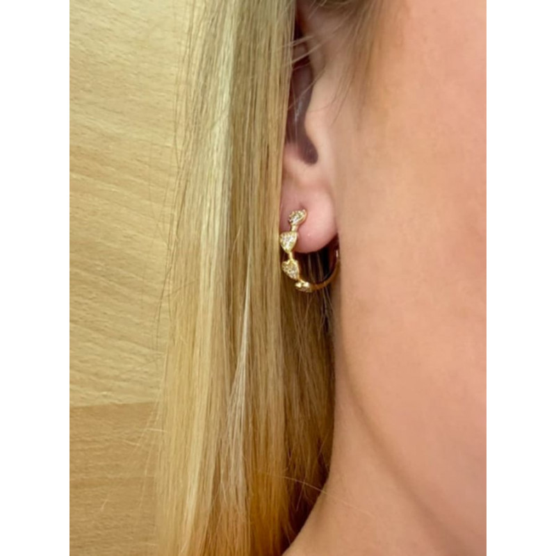 Πανέμορφα σκουλαρίκια κρίκοι με καρδιές με λευκά ζιργκόν από επιχρυσωμένο ασήμι 925